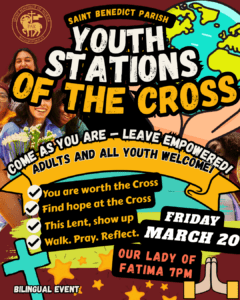 All are welcomed to Join us on March 20th at 7:00 PM at Fatima Church for Stations of the Cross led by our youth.