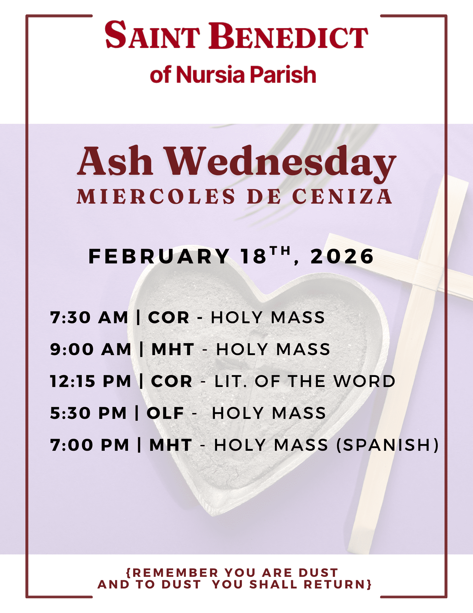 Begin the Journey of Lent We invite you to join us as we enter this sacred season of reflection, prayer, and renewal. Ash Wednesday reminds us of God’s mercy and our call to return to Him with open hearts. Ash Wednesday – February 18, 2026 Mass & Ash Distribution Times in the flyer below. May […]