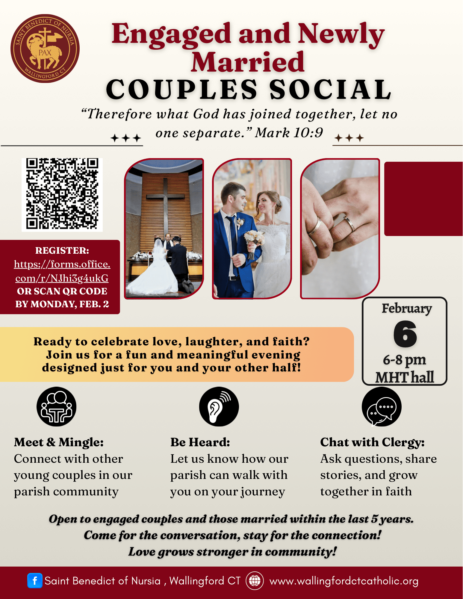New Date Announced! Our Engaged & Newly Married Couples Social has been rescheduled, and we hope you can join us! Friday, February 6th from 6-8pm at MHT Hall A relaxed evening to connect, share, and build community with other couples at a similar stage of life. If you’re engaged or newly married, this is a […]