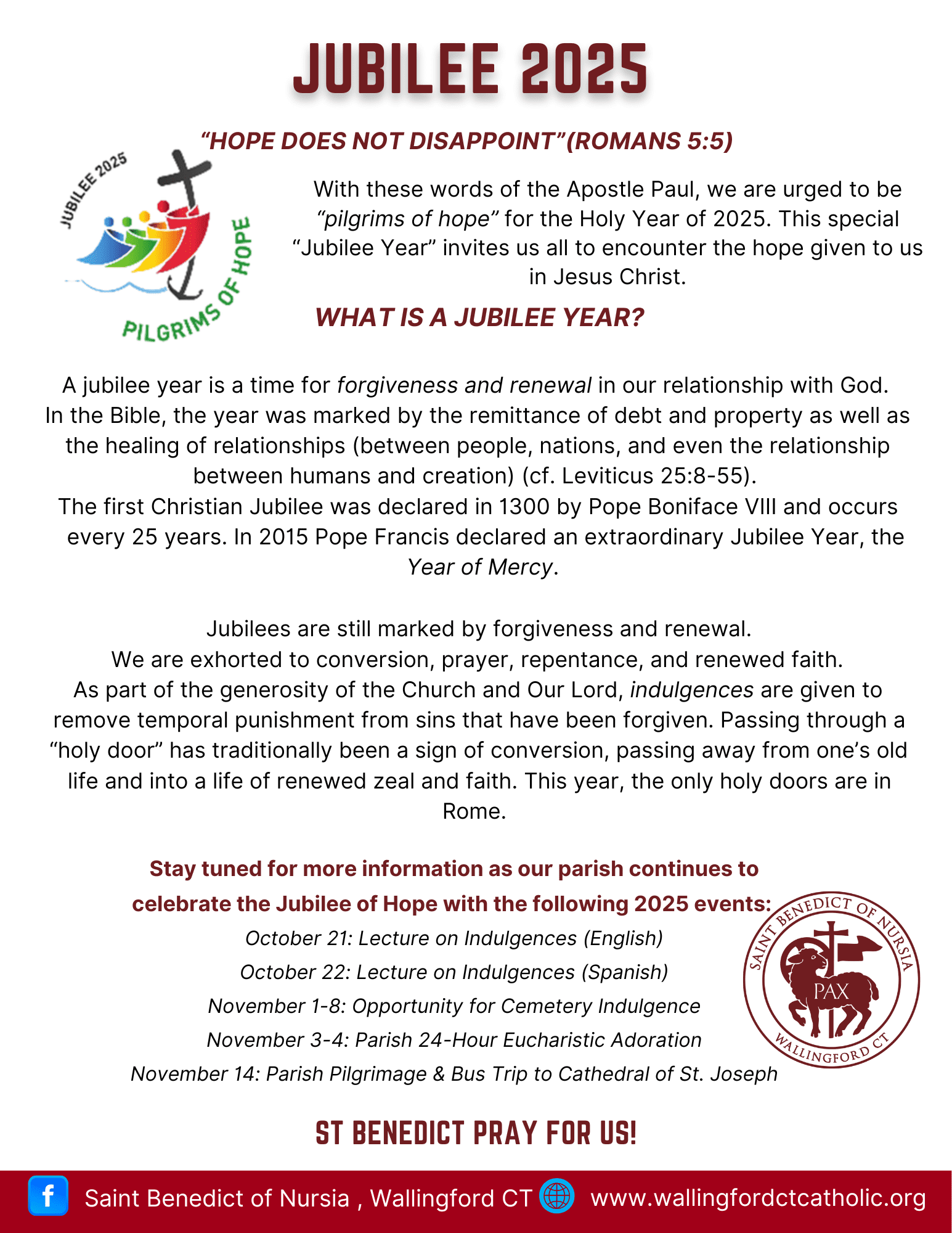 As we join the universal Church in celebrating this Jubilee of Hope, our parish is offering several opportunities to live out this pilgrimage of faith: