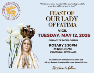 On Tuesday, May 12, gather with our parish family at Our Lady of Fatima Church for a special Vigil: