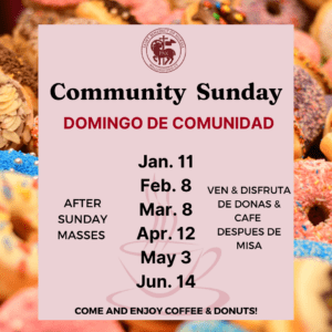 Church isn’t just something we attend, it’s something we’re a part of. Join us after Mass on once a month, for Community Sunday! It’s a simple way to connect, share a cup of coffee, and grow in community. Whether you’re new or returning, there’s a place for you here.